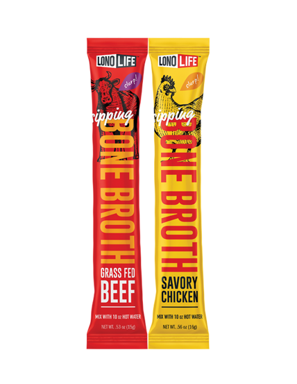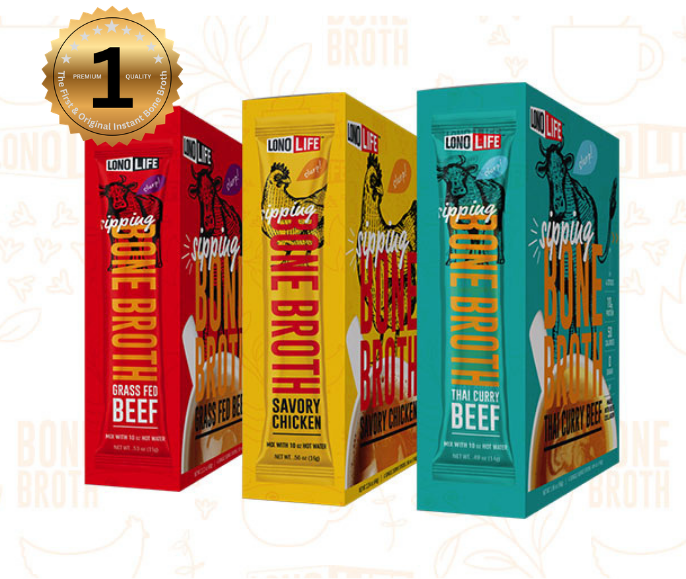 LonoLife makes its beef bone broth the old-fashioned way -- by slowly simmering the bones of grass-fed, pasture-raised cattle. We add a rich, savory blend of chicory root, black pepper, sea salt, and a blend of herbs and spices (our family secret!) for the perfect, on-the-go health drink.