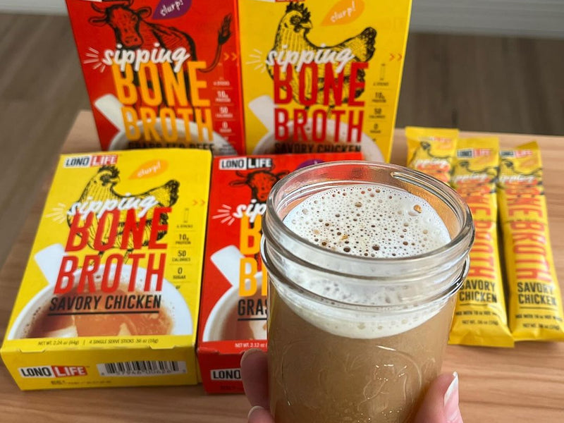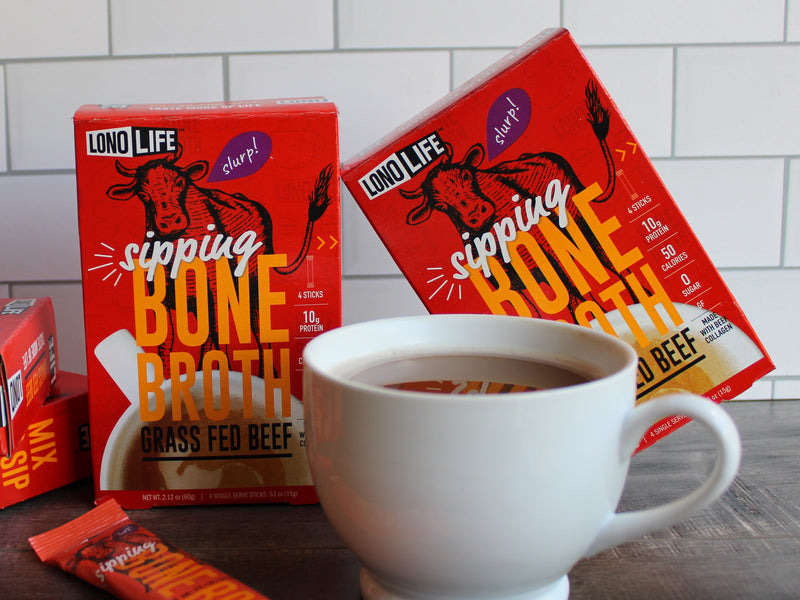 LonoLife makes its beef bone broth the old-fashioned way -- by slowly simmering the bones of grass-fed, pasture-raised cattle. We add a rich, savory blend of chicory root, black pepper, sea salt, and a blend of herbs and spices (our family secret!) for the perfect, on-the-go health drink.